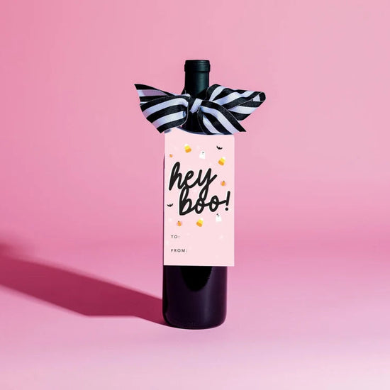 This Halloween add the perfect finishing touch to any wine or champagne bottle with this "Hey Boo" wine bottle tag.